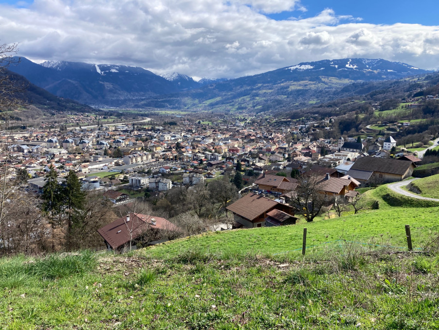Coteau de Sallanches, vue imprenable sur le massif du Mont-Blanc pour cette parcelle de terrain de 1003m² (dont 792m² constructibles).